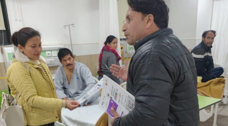 मीडिया लाइव, देहरादून : राज्य स्वास्थ्य प्राधिकरण की ओर से देहरादून जनपद के विभिन्न सरकारी व निजी चिकित्सा संस्थानों में आयुष्मान जागरूकता कार्यक्रम चलाया गया। इस अवसर पर अस्पताल में भर्ती मरीज, उनके तीमारदार व ओपीडी में आए लोगों को आयुष्मान व एबीडीएम की विभिन्न जानकारियों से रूबरू कराया गया। साथ ही उन्होंने आयुष्मान योजना की जानकारियों से युक्त पंपलेट व अन्य प्रचार सामाग्री वितरित की गई।