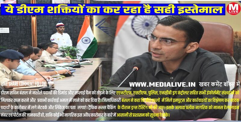 Read Moreमीडिया लाइव, देहरादून : ‘‘ड्रग्स फ्री देवभूमि’’ के संकल्प को साकार करने के लिए जिला प्रशासन ने प्रभावी रणनीति तैयार