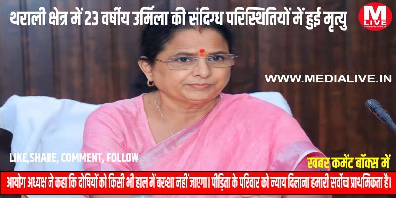 मीडिया लाइव, देहरादून : चमोली जनपद के दूरस्थ थराली क्षेत्र में 23 वर्षीय उर्मिला की संदिग्ध परिस्थितियों में हुई मृत्यु