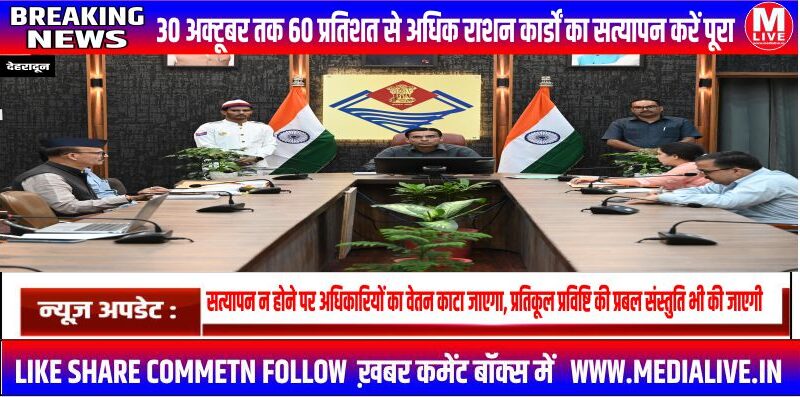 Read Moreमीडिया लाइव , चमोली: जिले में राशन कार्ड एवं आयुष्मान कार्ड सत्यापन कार्याे को लेकर जिलाधिकारी सविन बंसल ने समीक्षा