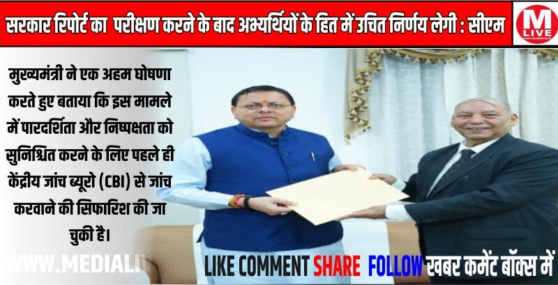 मुख्यमंत्री ने आयोग के कार्य की सराहना करते हुए कहा कि राज्य सरकार रिपोर्ट का गहनता से परीक्षण करने के बाद अभ्यर्थियों के हित में उचित निर्णय लेगी। धामी ने एक अहम घोषणा करते हुए बताया कि इस मामले में पारदर्शिता और निष्पक्षता को सुनिश्चित करने के लिए पहले ही केंद्रीय जांच ब्यूरो (CBI) से जांच करवाने की सिफारिश की जा चुकी है।