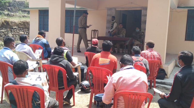 पुलिस से मिली जानकारी के मुताबिक थाना थलीसैण क्षेत्र के स्यूंसी स्थित वन विभाग के रेंज कार्यालय में ग्राम प्रहरियों के साथ गोष्ठी आयोजित करते हुए वनाग्नि की रोकथाम के संबंध में प्रहरियों को अपने अपने गांव में लोगों को आग न लगाए जाने तथा घटना करने वालों के विरूद्ध मुकदमे की कार्यवाही किये जाने अवगत कराए जाने के संबंध में निर्देशित किया गया। लगातार बढ़ती वनाग्नि की घटनाओं को देखते हुए पुलिस ने व वन विभाग के साथ रोकथाम के लिए अवगत कराया गया। गोष्ठी में वनक्षेत्राधिकारी अमीषा थपलियाल मौजूद रही। बैठक में बाजार व गांवों में बांटने को प्रहरियों को पुलिस ने जागरूकता पम्पलेट भी दिये।