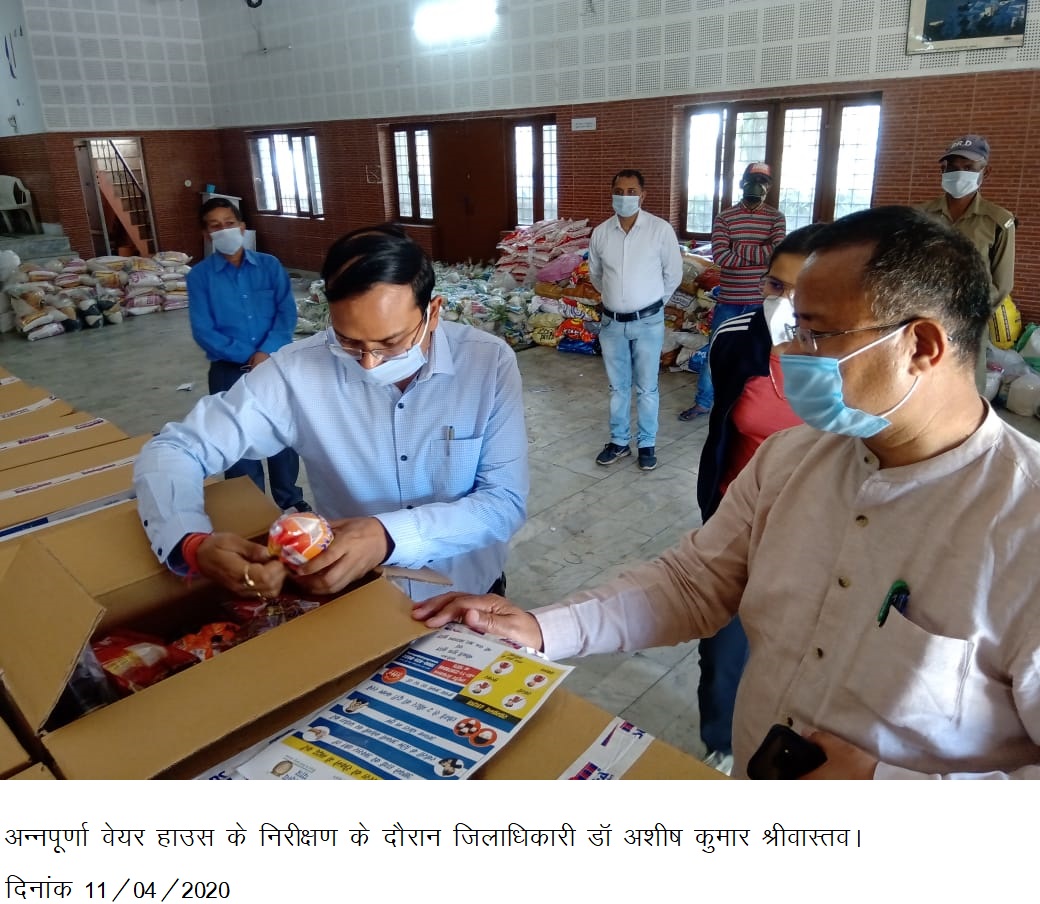 डीएम ने अन्नपूर्णा वेयर हाउस में साफ-सफाई का विशेष ध्यान रखने की हिदायत दी. इस दौरान जिलाधिकारी ने जिला आपदा परिचालन केन्द्र का भी निरीक्षण किया हेल्पलाइन के अन्तर्गत प्राप्त होने वाली विभिन्न प्रकार की काॅल एवं उस पर की गयी कार्यवाही की जानकारी प्राप्त की गयी।