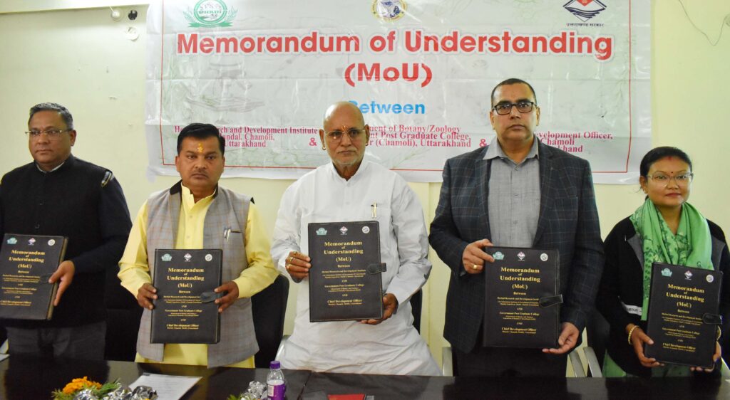 मीडिया लाइव, चमोली : नई शिक्षा प्रणाली तहत छात्र-छात्राओं की क्षमता विकास करने की मंशा से जड़ी-बूटी शोध एवं विकास संस्थान मंडल, चमोली ने पहल की है। जिसके तहत गुरुवार को संस्थान ने राजकीय स्नातकोत्तर महाविद्यालय, गोपेश्वर के साथ ही कृषि, उद्यान, सहकारिता, भेषज संघ सहित अन्य रेखीय विभागों के साथ एमओयू किया है। जिसके बाद अब जड़ी बूटी के कृषिकरण के प्रसार के साथ ही शोध करने वाले छात्रों को सुगमता से जानकारी उपलब्ध हो सकेगी।